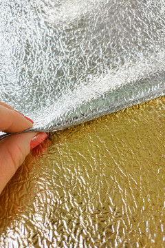 Paksu, pehmeä, hieman joustava ja metallinhohtoinen kangas. Kankaan pinnassa yhdistyvät upealla tavalla nahkajäljitelmä ja foliomaisuus. Soveltuu mm. näyttäviin asuihin, asusteisiin, lavastuksiin ja somistuksiin.