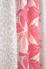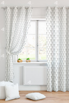 Kauniisti laskeutuva mustavalkoinen verhokangas.
