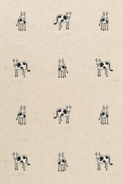Ohuehko joustamaton puuvilla-polyesterisekoitekangas hauskalla lehmäkuosilla. Sopii hyvin vaatetukseen, esimerkiksi mekkoihin ja paitoihin, sekä sisustukseen, vaikkapa verhoihin.