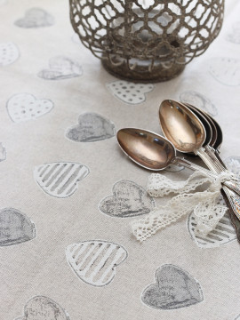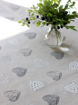 Harmoninen tuplaleveä puuvillasekoitekangas sydänkuosilla sopii hyvin erilaisiin sisustustekstiileihin, kuten verhoihin, tyynyihin ja päiväpeitteisiin.