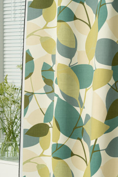 Kuviollinen dimout -pimennysverhokangas, joka hämärtää tilan huomattavasti tavallista verhokangasta paremmin.