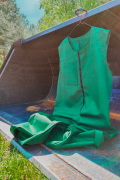 Sanforoitu, merseroitu ja pehmennetty twill-sidoksinen tukeva työvaatekangas.