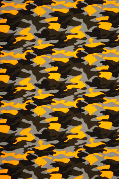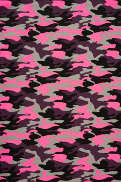 Puuvillatrikoo kirkaalla maastokuosilla. Sopii hyvin monenlaiseen tarkoitukseen, esimerkiksi paitoihin, legginseihin, mekkoihin ja tunikoihin, sekä pipoihin ja pantoihin.