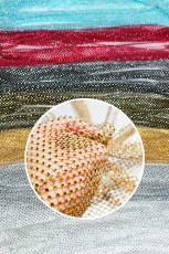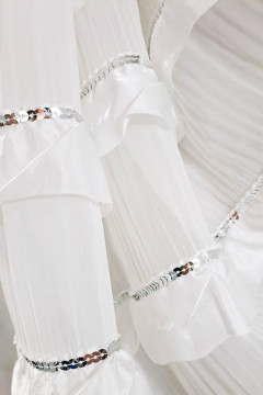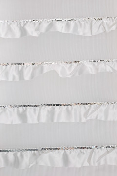 Sifonki, johon on ommeltu pitkittäin satiininauhoja sekä paljetteja. Sopii hyvin juhla- ja esiintymisasuihin, kuten mekkoihin ja puseroihin.