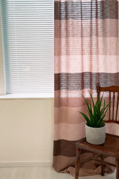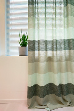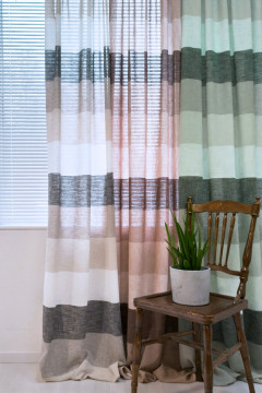 Chacra on kevyesti läpikuultava tuplaleveä verhokangas, jonka toisessa reunassa on kankaaseen kiinnitetty painonauha verhopainona. Kankaassa on kolme kaunista murrettua sävyä, jotka koostuvat leveästä vaakaraidoituksesta.