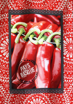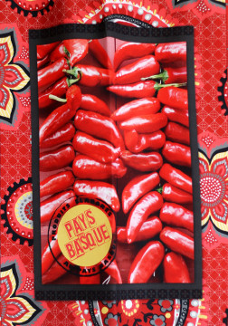 Paksuhko puuvillakangas, jossa on kole suurempaa kuvaa rinnakkain.