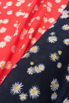 Kevyt kukallinen rayon, joka sopii hyvin mekkoihin paitoihin, sekä kesäisiin housuihin.