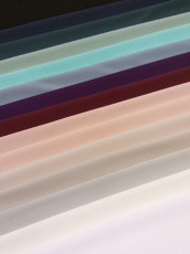 Diiva on sileäpintainen, läpikuultava ja kevyt "perinteinen" sifonkikangas, johon on painettu hieman utuinen ja abstrakti kuviointi. Kuvioinnin painatus tulee sifongista läpi siten, että värit ovat kankaan nurjalla puolella vain aavistuksen haaleammat. Upea vaihtoehto esimerkiksi helmojen, hulmuavien hihojen ja huivien valmistukseen, joissa kankaan molemmat puolet näkyvät