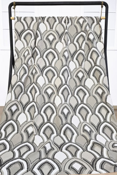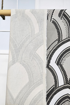 Harmonisen värinen, graafisesti kuvioitu puuvillasekoite kangas, joka soveltuu monipuoliseen sisustuskäyttöön verhoista kevyeen verhoiluun. Kankaan kuviointi on painettu natural -väriselle pohjalle.