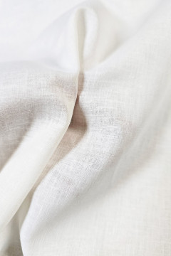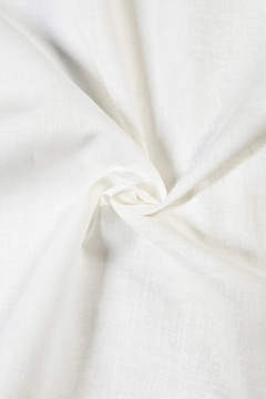 Valkoinen ja pellavalle ominaisesti hieman ryhdikäs puuvillapellavakangas.
