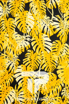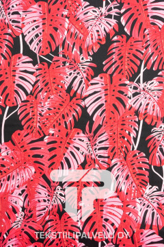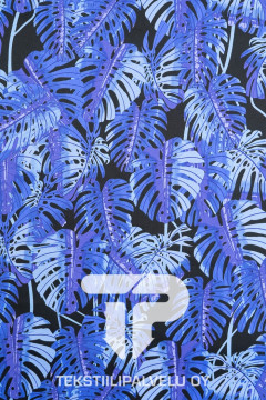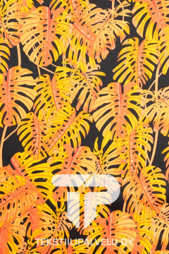 Lehtikuvioinen puuvillakangas, joka joustaa kevyesti leveyssuunnassa. Sopii hyvin esimerkiksi mekkoihin, paitoihin ja housuihin.