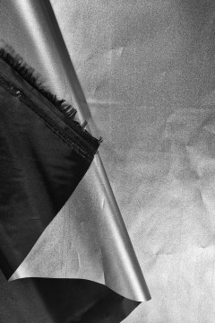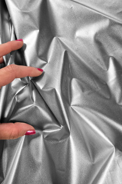 Kankaassa on yksipuoleinen hopeointi, joka suojaa auringon paahteelta. Kankaan nurja puoli on musta.