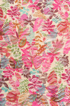 Ohuehko ja pehmeä tuplaneulos, jossa päällimmäinen kerros muodostuu lenkkimäisestä pinnasta. Hauskan eläväinen vaatetuskangas.