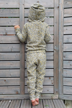 Leopardikuvioitu froteeneulos, joka sopii hyvin esimerkiksi vaateompeluun.