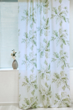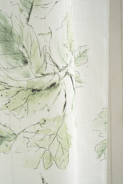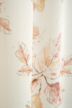 Kauniisti läpikuultava verhokangas suurella akvarellimaalauksenomaisella kukkakuosilla.