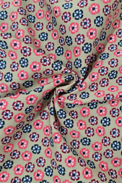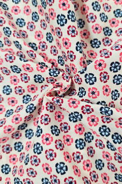 Ohut puuvillakangas pienellä kukkakuosilla. Sopii hyvin muun muassa vaatetukseen, kuten paitoihin ja mekkoihin, sekä erilaisiin käsitöihin, kuten tilkkutöihin.
