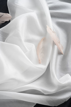 Tämä höyhenenkevyt silkkikangas on ihanteellinen huivimateriaali. Soveltuu värjäykseen ja kankaanpainantaan.