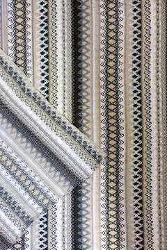 Inka on kaunis musta-valko-harmaa sävyinen kuvioneulos, joka on molemmin puolin käytettävissä. Toisella puolella kangasta kuvio piirtyy selkeänä ja toiselle puolelle muodostuu kauniin utuinen pinta.