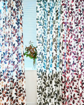 Hyvin laskeutuva hieman läpikuultava verhokangas, joka soveltuu loistavasti myös muihin kodintekstiileihin kuten esimerkiksi koristetyynyihin ja kaitaliinoihin.