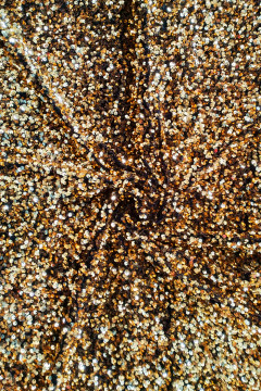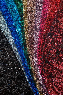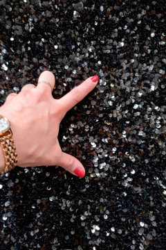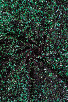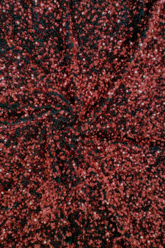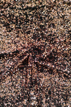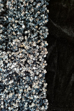 Samettipohjainen, hieman joustava ja todella näyttävä paljettikangas. Paljetit on ommeltu samettiin 115cm leveydelle ja kankaan reunoilla on reilu 10cm kaistaleet mustaa pohjasamettia. Paljetit läikkyvät eri metallihohtosävyissä ja niiden halkaisija on noin 5mm. Sopii hyvin esimerkiksi näyttävien esiintymis- ja juhla-asujen valmistukseen.