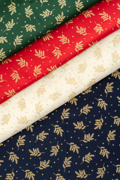 Kaunis jouluinen ohuehko puuvillakangas, joka soveltuu hyvin esimerkiksi sisustustekstiileihin ja joulusomisteisiin.