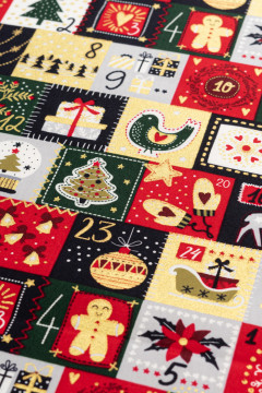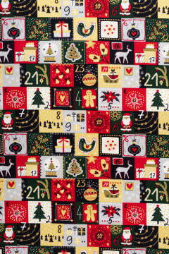 Kaunis ohuehko puuvillakangas, joka soveltuu hyvin esimerkiksi sisustustekstiileihin, tilkkutöihin ja joulusomisteisiin. Kankaassa on kaunista kultapainatusta.