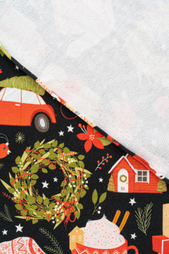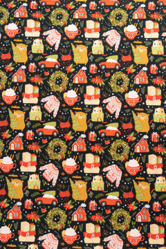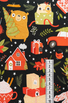 Hauska jouluteemainen joustocollege. Materiaali on tunnultaan miellyttävän pehmeää ja napakkaa, tästä on helppo ommella myös esim. pääntiet collegepaitoihin.
