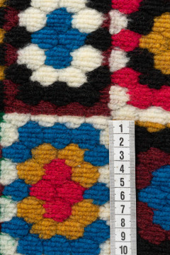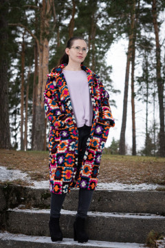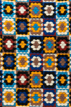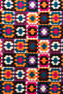 Veikeä isoäidinneliökuosin tyylisesti kuvioitu villasekoitekangas monipuoliseen vaatetus ja asustekäyttöön. Tämä kangas soveltuu hyvin myös tuomaan pirteyttä kevyeen sisustuskäyttöön esimerkiksi koristetyynyksi tai heittopeitoksi sängyn jalkopäätyyn.