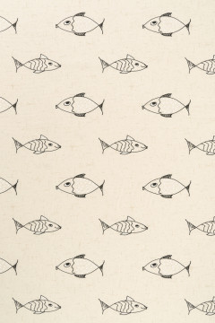Ohuehko joustamaton puuvilla-polyesterisekoitekangas hauskalla kalakuosilla. Sopii hyvin vaatetukseen, esimerkiksi mekkoihin ja paitoihin, sekä sisustukseen, vaikkapa verhoihin.