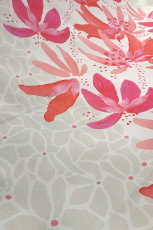Tuplaleveä puuvillakangas, jonka kuosi on kuin kirjavaksi maalattu laitaseinä, jota koristaa kukkaset. Sopii hyvin erilaisiin sisustustekstiileihin.