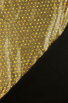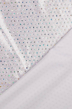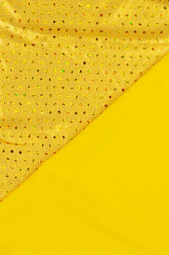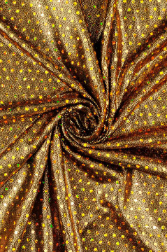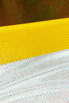 Lycran kaltainen joustava neulos, jonka pinta on täynnä metallinhohtoista pistepainatusta ja noin 2mm halkaisijan metallinhohtoisia hologram liimapaljetteja. Metallinhohto on mustalla ja keltaisella pohjalla kullansävyistä ja valkoisella pohjalla hopeaa. Sopii hyvin mm. esiintymisasujen valmistukseen.