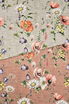 Kauniilla kukkateemaisella kuosilla painettu puuvillakangas soveltuu hyvin mm. monipuoliseen kodintekstiilien valmistukseen.