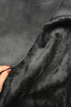 Musta kelsijäljitelmä, jonka toisella puolella on lyhyt karva ja toinen puoli pehmeä ja sileä.