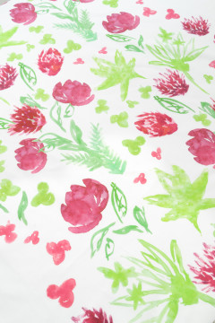 Kuosi on suunniteltu niin, että reunojen valkoiset osat korostavat kauniisti keskellä olevaa kevätkukkapeltoa.