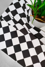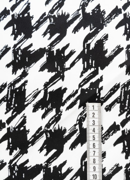 Mustavalkoinen graafinen joustava vaatetuskangas.