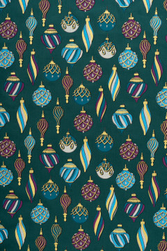 Jouluinen ohuehko puuvillakangas, joka soveltuu hyvin esimerkiksi sisustustekstiileihin, tilkkutöihin ja joulusomisteisiin. Kankaassa on kaunista metallinhohtopainatusta.