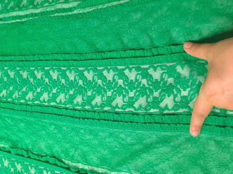 Ohut, pehmeä ja joustava pitiskangas, johon erilaiset pitsit ja nauhat muodostavat pystyraidat. Sopii hyvin muun muassa juhla- ja esiintymisasuihin, paitoihin ja mekkoihin.