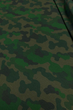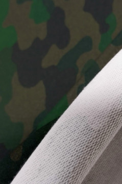 Maastokuvioinen lenkillinen joustocollege monipuoliseen vaate- ja asustevalmistukseen.