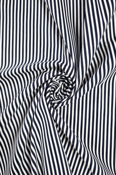 Valkopohjainen puuvillatwill, jolle on painettu 4mm leveää raitaa. Monipuolinen yleiskangas sekä vaate- että sisustustekstiilien valmistukseen.