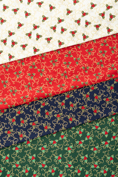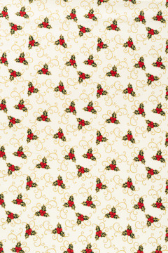 Kaunis jouluinen ohuehko puuvillakangas, joka soveltuu hyvin esimerkiksi sisustustekstiileihin ja joulusomisteisiin.