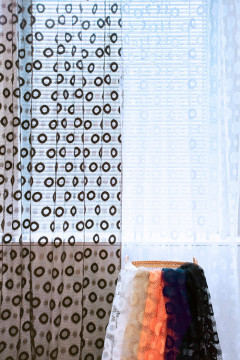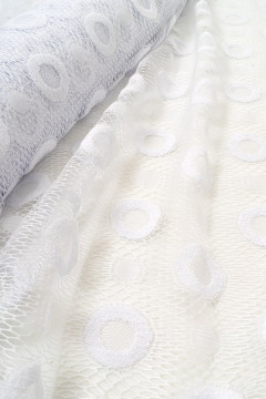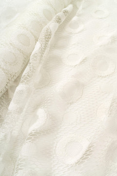 Ihastuttava graafinen pitsikangas, joka supermonipuolisena soveltuu niin vaatevalmistukseen, sisustukseen kuin lavastus- ja somistustarkoitukseenkin. Vesipesun ansiosta myös hyvin helppohoitoinen!