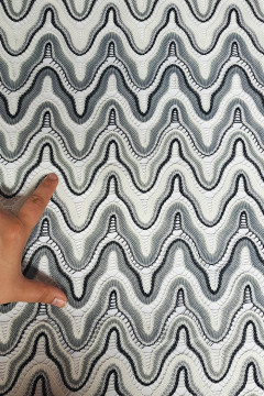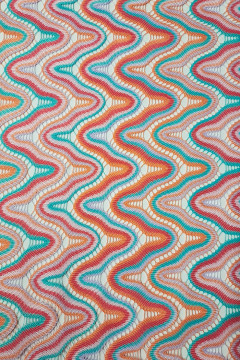 Ohuehko kangas, jonka kudotut kirjavat aaltomaiset raidat muodostavat kankaaseen siksak kuvion.