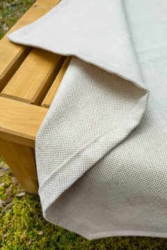Paksuhko, seminatural -värinen puolipellavakangas, jonka pinta on kauniin elävä eri värisen kuteen ja loimen ansiosta.