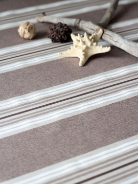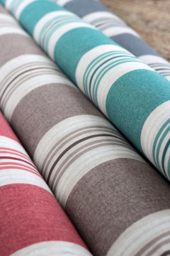Tukevahko puuvillasekoite sopii hyvin sisustustekstiileihin. Pystyraidoilla saat luotu tilaan korkeutta.
