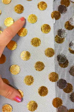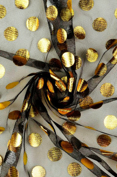 Pehmeä ja kevyt tylli, jonka pintaan on foliopainettu 2cm halkaisijaltaan olevia palloja. Keltaisen ja musta tyllin foliopallot ovat kultaisia ja valkoisen tyllin hopeisia. Kaikkien värien foliopallot ovat nurjalta puolelta hopeisia.