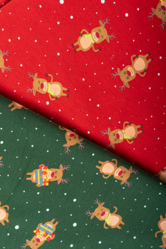 Kevyesti harjattu jouluinen college Petteri Punakuono kuosilla. Sopii hyvin esimerkiksi paitoihin, housuihin, haalareihin, tunikoihin sekä huppareihin.