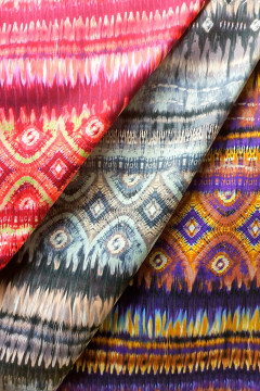 Joustava ja painettu puuvillasatiinikangas, joka sopii monipuoliseen vaateompeluun.