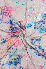 Kiiltävä tukevahko kangas kauniilla kuvioinnilla. Sopii hyvin juhla- ja esiintymisasuihin kuten mekkoihin, toppeihin, korsetteihin ja jakkupukuihin, tai vaikkapa sisustukseen koristetyynyihin tai näyttäviksi verhoiksi.