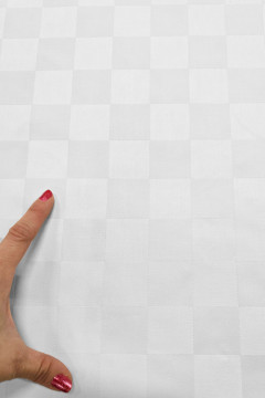 Roosentaal on ryhdikäs, julkitilakäyttöönkin erinomaisesti sopiva tuplaleveä pöytäliinakangas. Ruutukuosiin kudottu kangas on molemmin puolin tyylikäs ja yhden ruudun halkaisija on 35 x 35mm.