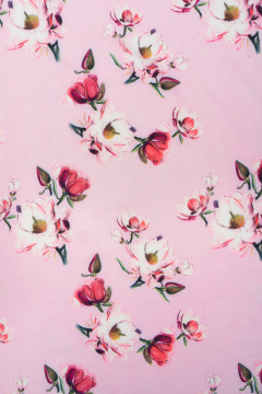 Kevyt, joustava ja kauniisti laskeutuva polyesterikangas kukkakuosilla. Sopii hyvin esimerkiksi paitoihin, mekkoihin, hameisiin sekä vaikkapa kesäisiin housuihin.